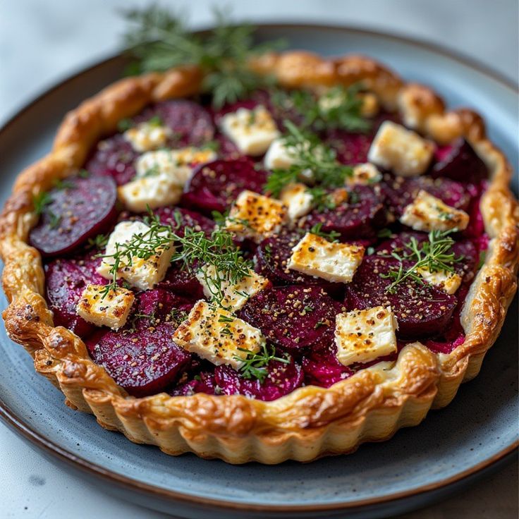 The Beetroot and Goat Cheese Tart is a stunning combination of earthy, sweet beets paired with the tangy, creamy flavor of goat cheese, all encased in a buttery, crisp pastry. This tart is a perfect centerpiece for brunch, dinner parties, or even a special holiday meal. The deep red hue of beetroot contrasted with the white goat cheese makes this tart as visually appealing as it is delicious.